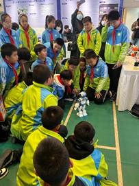 除了智能充电桩项目外,团队还展示了可编程的Nao机器人。Nao机器人凭借其可爱的外观和灵活的动作和强大的编程功能,深受参展观众的喜爱。在展会现场,Nao机器人展示了其灵活的舞蹈动作和智能交互功能,引得小朋友们争相上前互动体验。